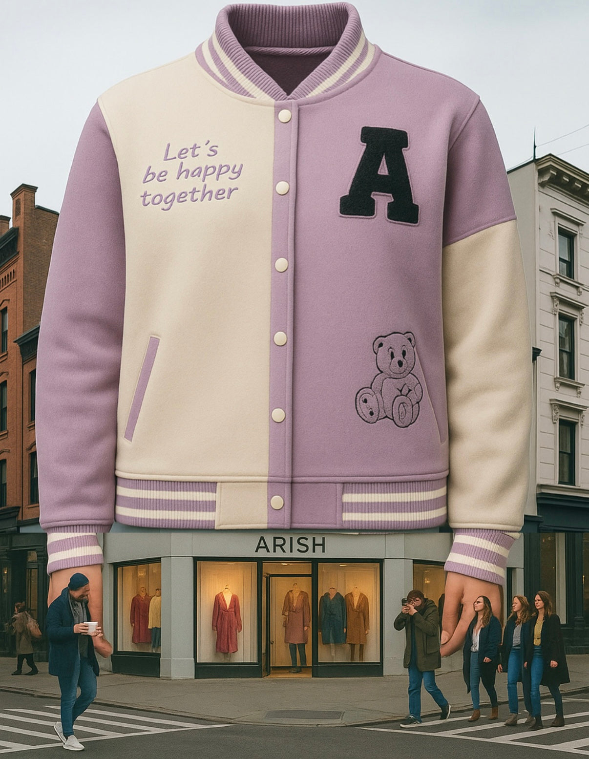 ARISH Lavender Cream Varsity Fleece Polyester Jacket, Imported
