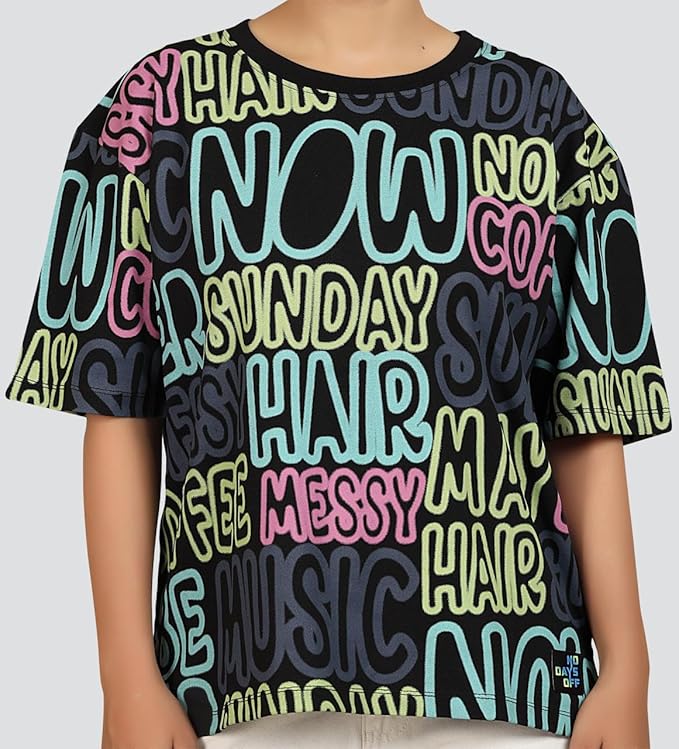 - Vibrant Design: This stylish top features a bold, colorful print with trendy colorful text graphics in eye-catching shades. Relaxed Fit: Crafted with a loose, flowy silhouette for a oversized and casual look. Design and style: Trending all over printed Color combination design with gives extra ordinary casual look Sleeve type: Half sleeve with stylish casual oversized design for Women and Girls