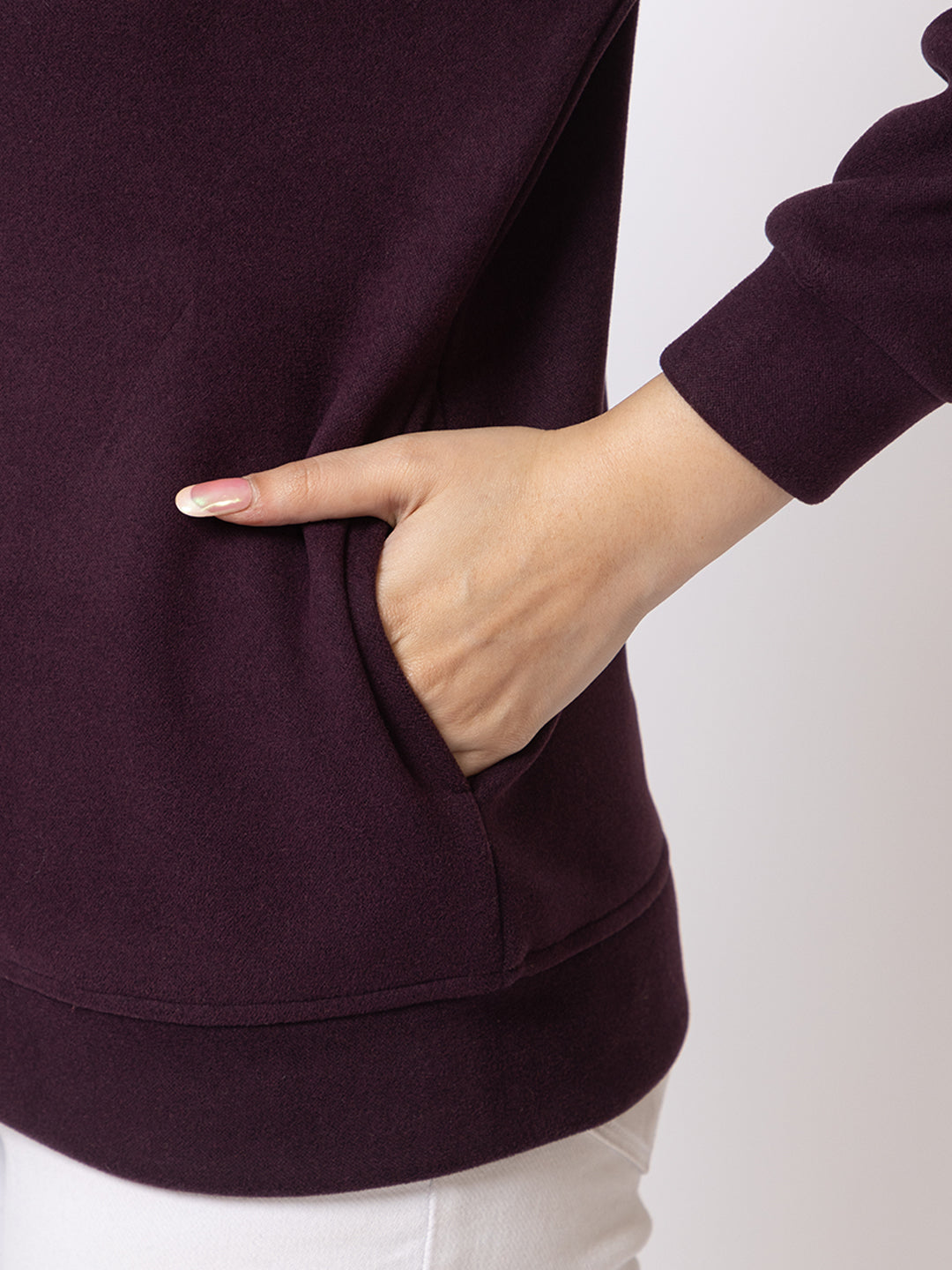 Urban Fashion Women's Zipper Hoodie, Imported Fleece, Tokyo Street Print, Wine Color